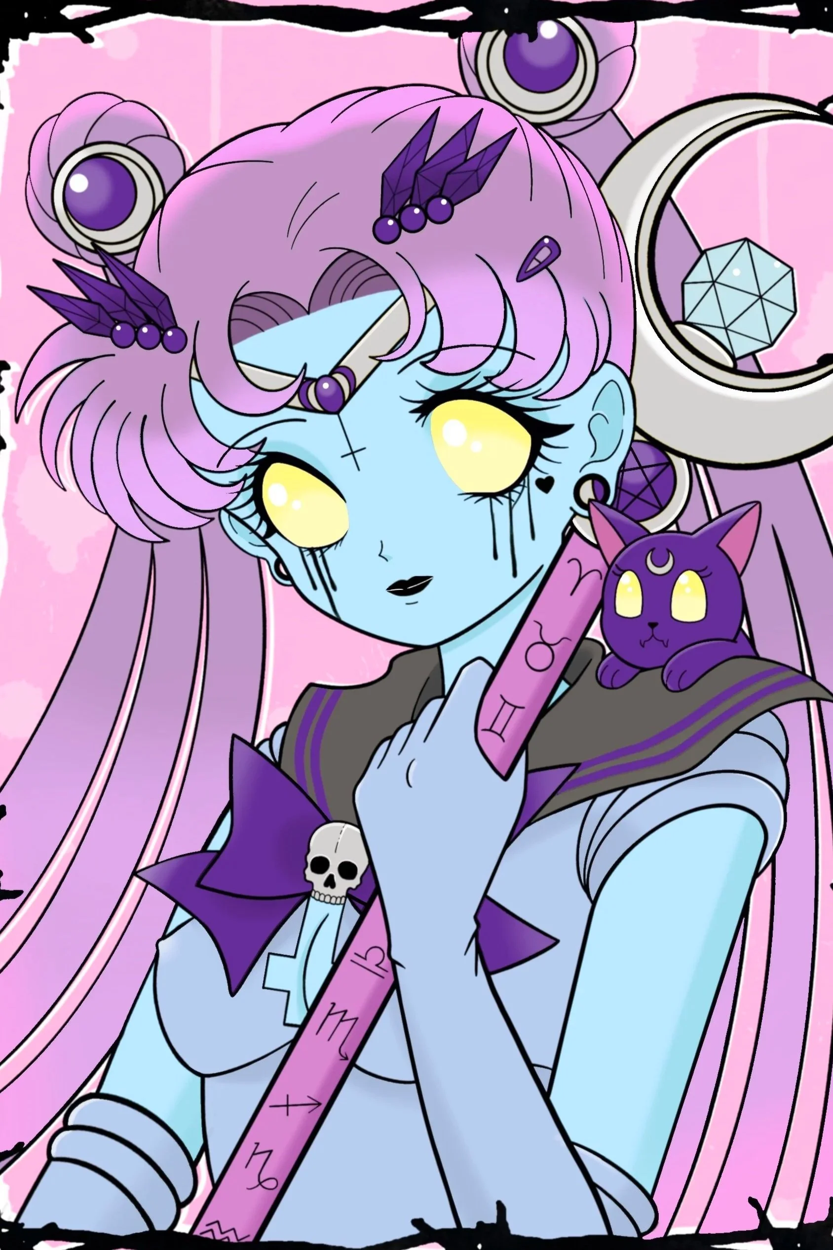Madeline B. is a professional tattoo artist, graphic designer, & multi media artist in Houston, Tx. She has won several awards for her tattoo work, designed eye catching logos for small businesses, & she is gaining recognition in the fine art world with her original multi media artworks. Madelineβs style is playful while also being thought provoking, she enjoys creating surreal imagery that often incorporates pop culture with a style that borders on both cute & creepy!